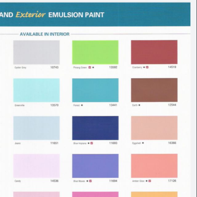 20469 raindrop white 20628 pearl grey 21446 frost 21447 blue moon 21554 blue angel 22699 sand white 22941 malt 23362 crystal ice 23363 light pine white 23364 winter green 24220 carnival 24316 cream 24317 early dawn 24468 sweet candy 25285 blossom white 25289 morning glory white 25600a white room.
